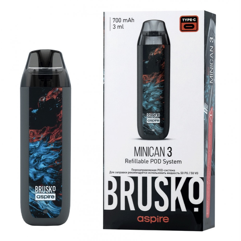 Перезаправляемая Под-Система Бруско Миникан 3 (Brusko Minican 3) 700 mah, Серый Флюид - купить в Долгопрудном
